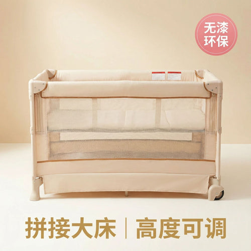 Infant bed 0 formaldehyde environmental protection material, seamless joint large bed + universal silent wheels, protect baby sleep. -